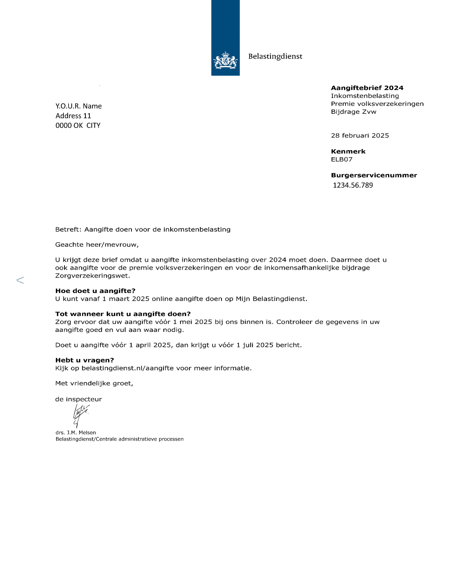 Aangiftebrief 2025