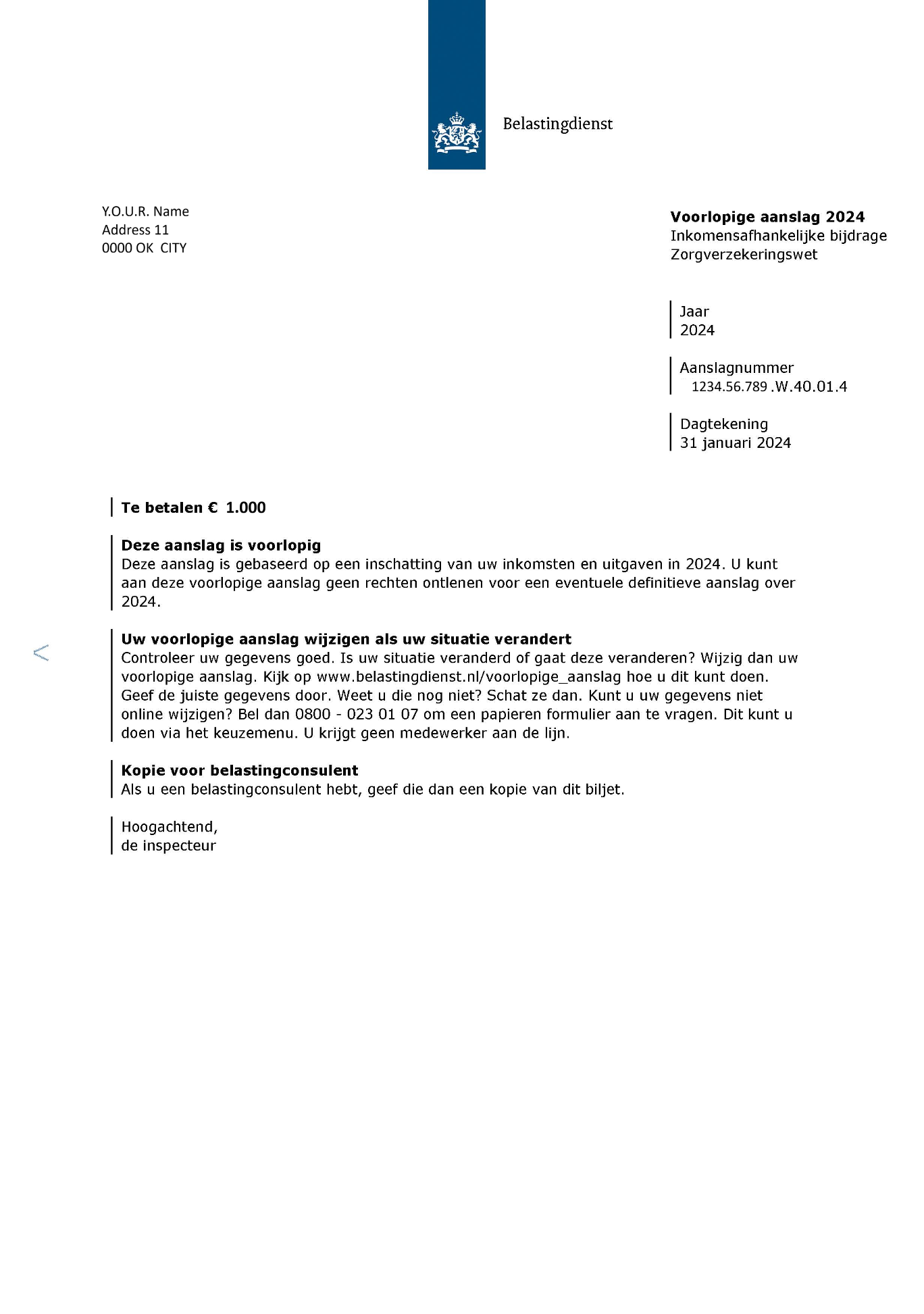 If you received a preliminary assessment in the previous year, the Dutch tax authorities often automatically issue a preliminary tax assessment for the new year.